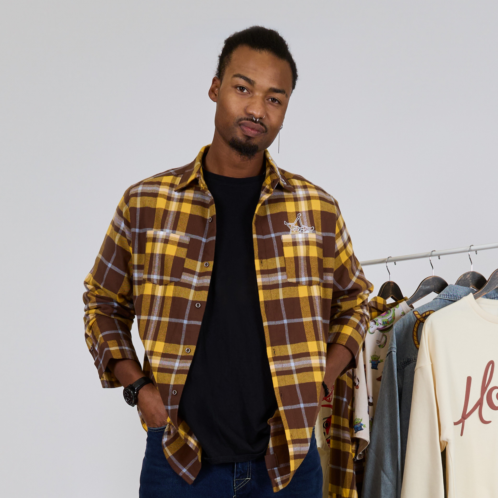 Howdy, partner! Our Disney and Pixar’s Woody’s Roundup Flannel celebrates everybody’s favorite cowboy, Woody! This western-inspired flannel features an embroidered Sheriff's badge in the pocket, Woody’s autograph on the pocket and a printed graphic of Sheriff Woody and Bullseye on the back with the quote “Ride like the wind Bullseye”