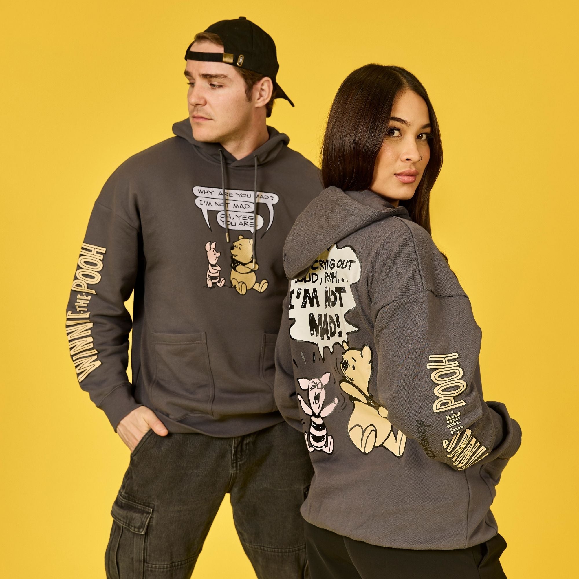 Tell ‘em how you really feel with our Disney’s Winnie the Pooh Comic Hoodie! This unisex hoodie features Pooh Bear and Piglet embroidered on the front and printed on the back with the hilarious conversation where Piglet really lets Pooh know “I’M NOT MAD AT YOU”.