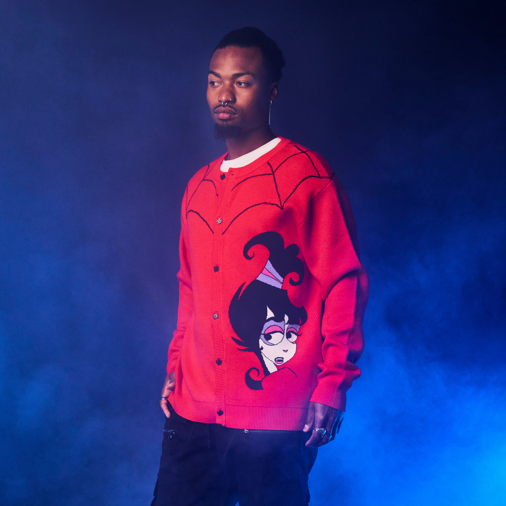 Turn the ghostly hauntings loose! This Lydia Deetz™ Animated Series Cardigan features spiderweb details, spider buttons, and Lydia herself… It's truly ghastly. Made for the misfits who are strange and unusual, this is a new closet must-have!