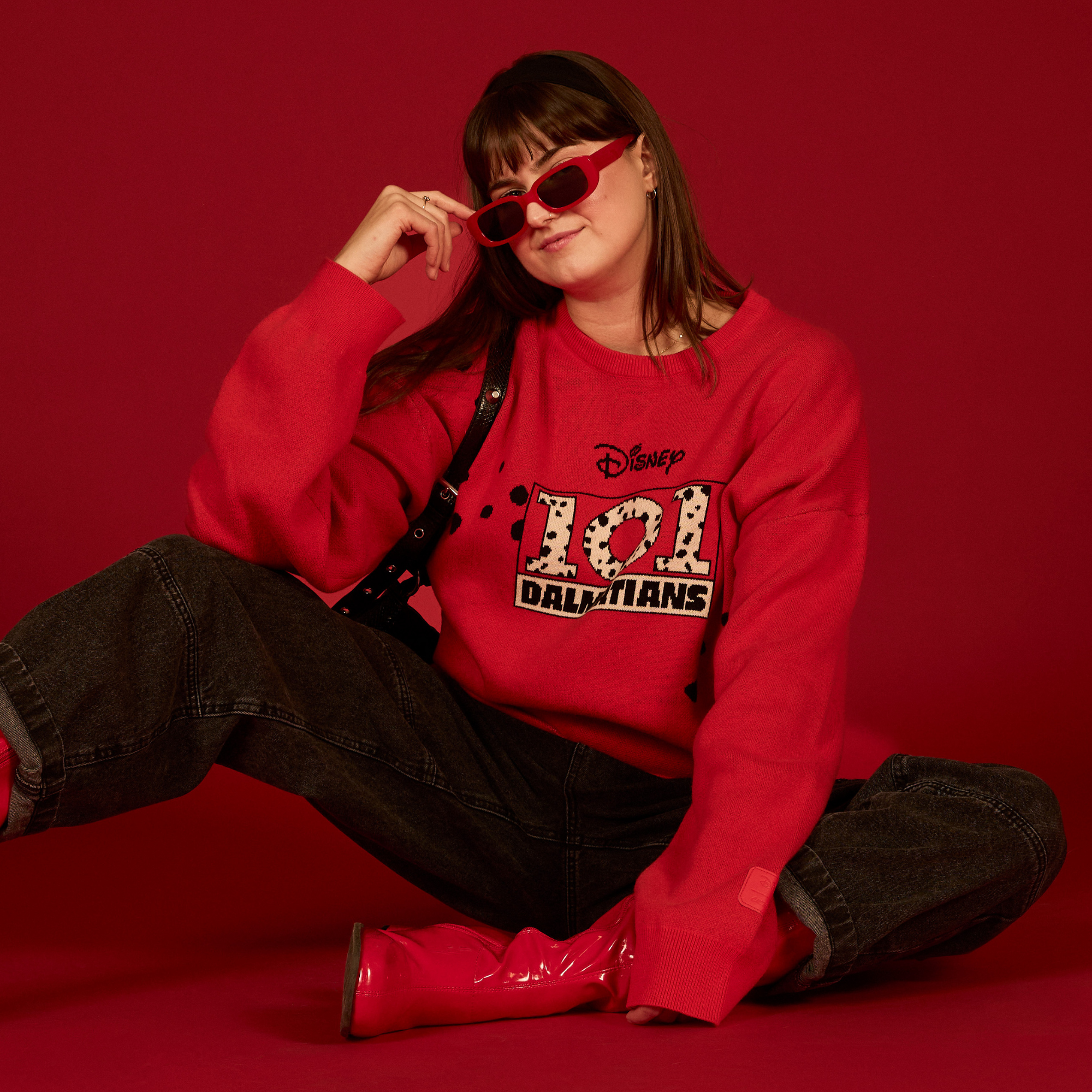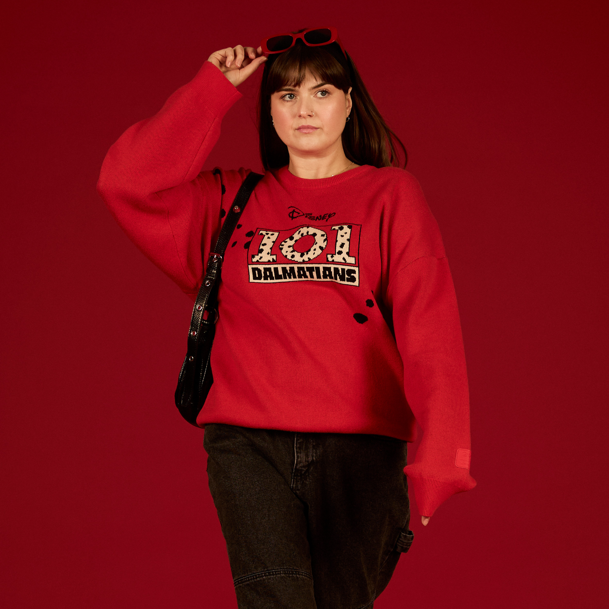 To celebrate the 65th anniversary of Disney’s One Hundred and One Dalmatians, we're introducing a new silhouette! This oversized knit sweater is a must-have for every fan of the animated Disney classic. It features a knit design with the One Hundred and One Dalmatians logo on the front and the playful puppies on the back. Complete with a vintage drop sleeve, ribbed cuffs, and a ribbed hem, our 101 Dalmatians Knit Sweater will be the yip and a woof of the Twilight Bark.