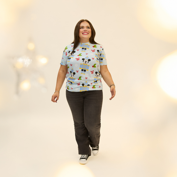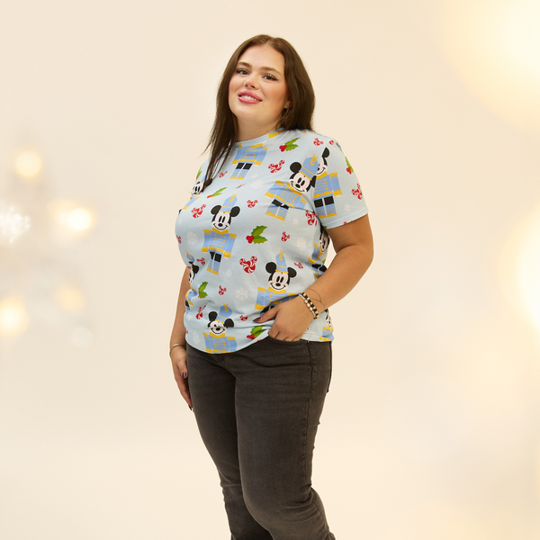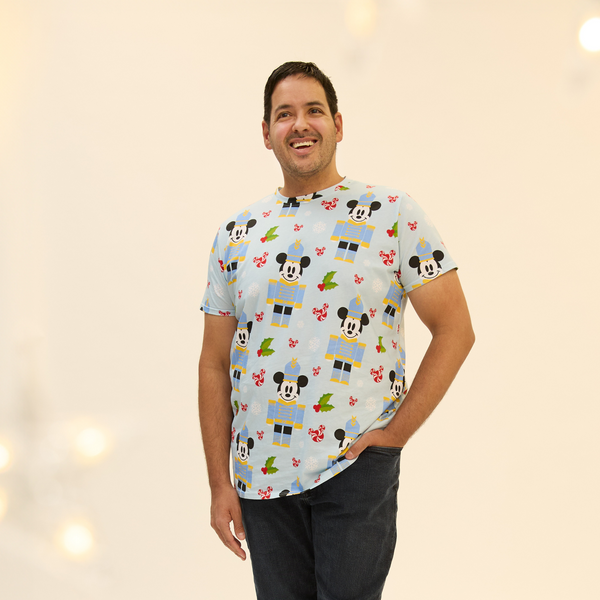 'Tis the season for must-have Disney apparel! Our Disney’s Mickey Mouse Nutcracker AOP T-Shirt showcases an all-over print of nutcracker-inspired Mickeys, holly, snowflakes, and peppermint Mickey icons for the ultimate seasonal look.