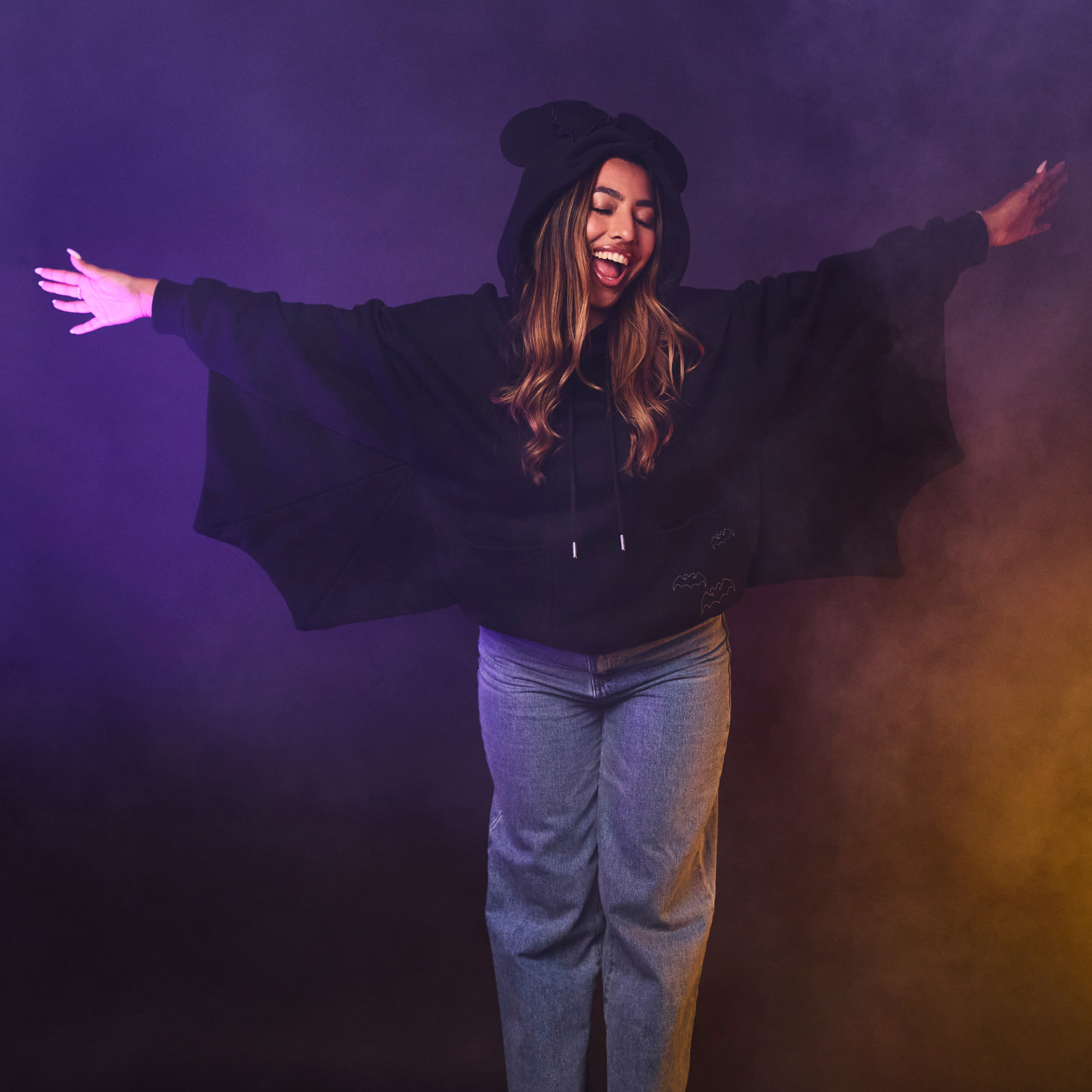 Take flight in our Disney’s Minnie Mouse Bat Hoodie! Not only does it feature built-in Minnie Ears and a bow, it features full-on bat wings and glow-in-the-dark bat details on the pocket. Literally, what more could you want? This hoodie has us going completely batty!