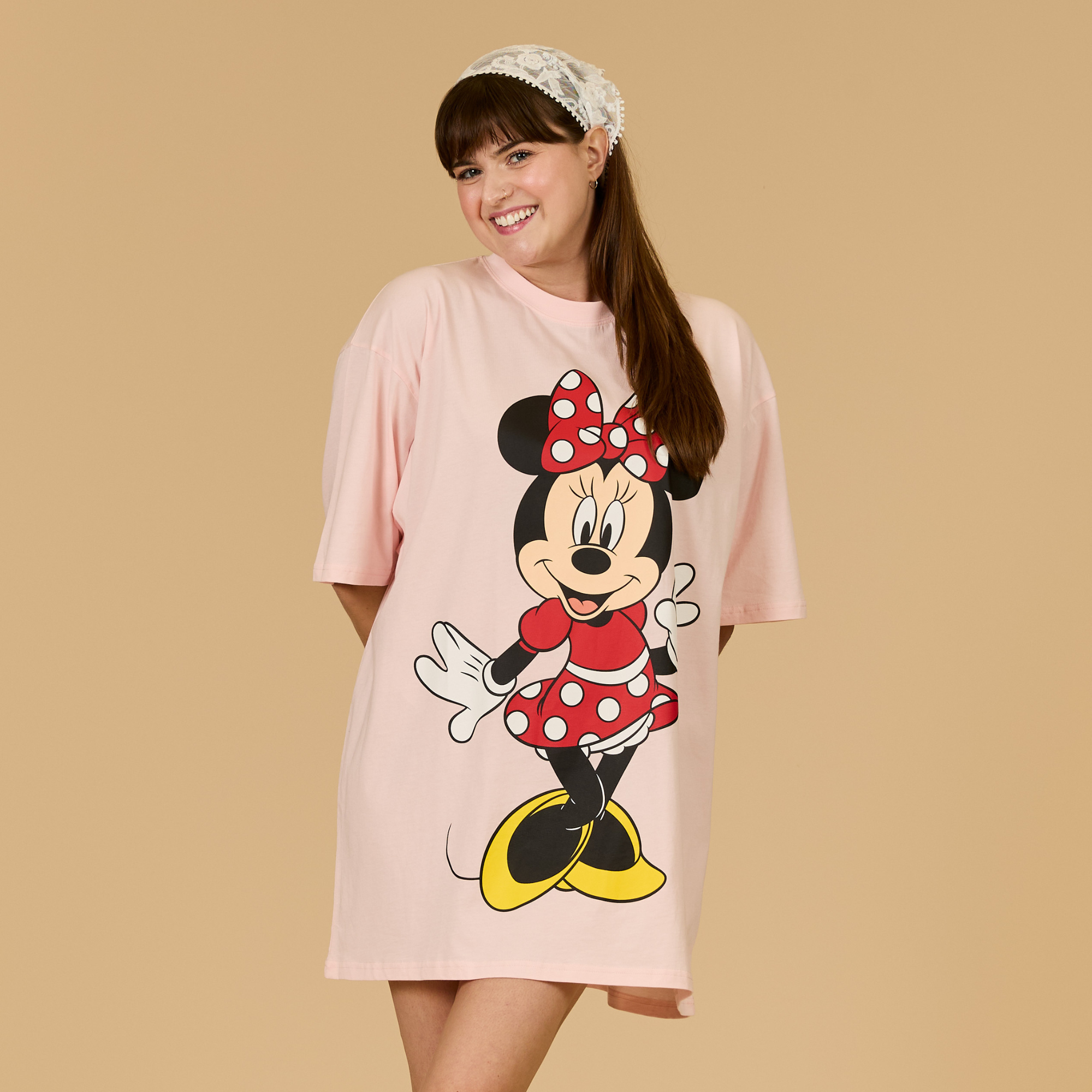 Sweet, stylish, and unmistakably Disney’s Minnie Mouse. Our Minnie Mouse T-Shirt Dress features Minnie Mouse in her signature red polka dots on the front and a retro “Minnie Mouse” logo across the back. Designed with a soft fabric and an easy, oversized silhouette, this t-shirt dress is equal parts cute and comfortable… perfect for everyday wear with a nostalgic twist.