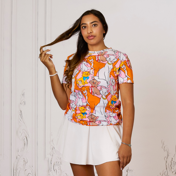 Are you pickin’ up on that feline beat? Well, we’ve got the AOP for those who know where ‘it’s’ at. Our Disney’s The Aristocats AOP T-Shirt features an all-over print pattern of Disney’s Thomas O’Malley, Duchess, Marie, Toulouse, Berlioz, and Roquefort the Mouse.