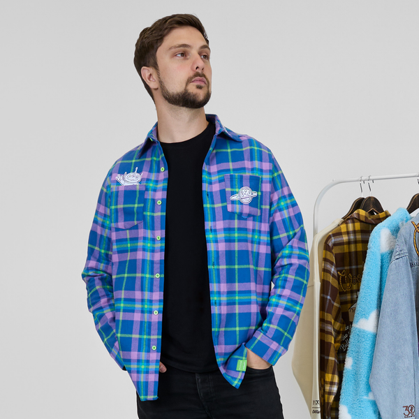 You have been chosen to check out our Disney and Pixar’s The Claw Flannel, you should be eternally grateful. This out of this world flannel features an embroidered Pizza Planet logo on the pocket, an Alien in the other, “OOOOHHH!” on the collar and a full back, printed, graphic of the Little Green Men and “The Claw”.